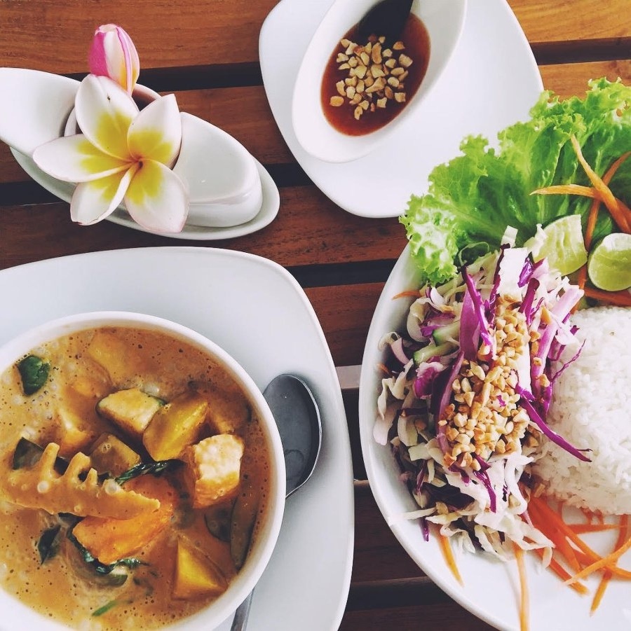 Ẩm thực chay kiểu Thái - nghe có vẻ lạ miệng phải không? Bạn có thể thử hương vị được chế biến đậm đà, món súp tomyum nóng hổi, thức tôm đậu nành cùng cà ri xanh là những món ăn đánh thức vị giác. Thật dễ hiểu tại sao ẩm thực Thái Lan lại được du khách quốc tế yêu thích như vậy!