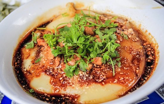 Một trong những món độc đáo nhất ở Myanmar là món Hto-hpu Nwe, nghĩa là “đậu phụ ấm”. Tên gọi là vậy nhưng món này không có đậu phụ mà chỉ có cháo đặc làm từ đậu gà.